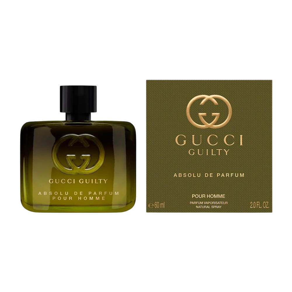 The men’s edition, Gucci Guilty Absolu de Parfum Pour Homme, presents an amber woody composition that balances warmth, spice, and smooth floral undertones. It combines the warmth and opulence of rum accord, the brightness of orange flower absolute, and a spicy twist of red chili pepper. The composition has a leathery, slightly sweet drydown.
