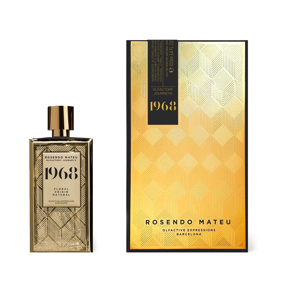 Rosendo Mateu 1968 is inspired by the origins of the master, his awakening to the world of fragrances and perfumes, his studies in Grasse where he acquired the knowledge of the main natural ingredients used in perfumery. 1968 is a fresh, floral, natural fragrance, based on the overwhelming fragrance of tuberose, sophisticated and sensuous. It is a clean green tuberose creation with rose, aromatic notes; and a base of vanilla, musk and woody notes which give the fragrance a delightful ending.
